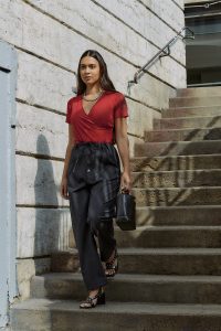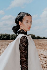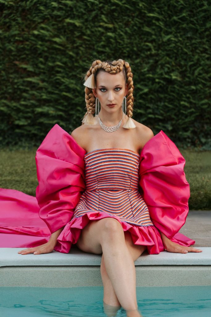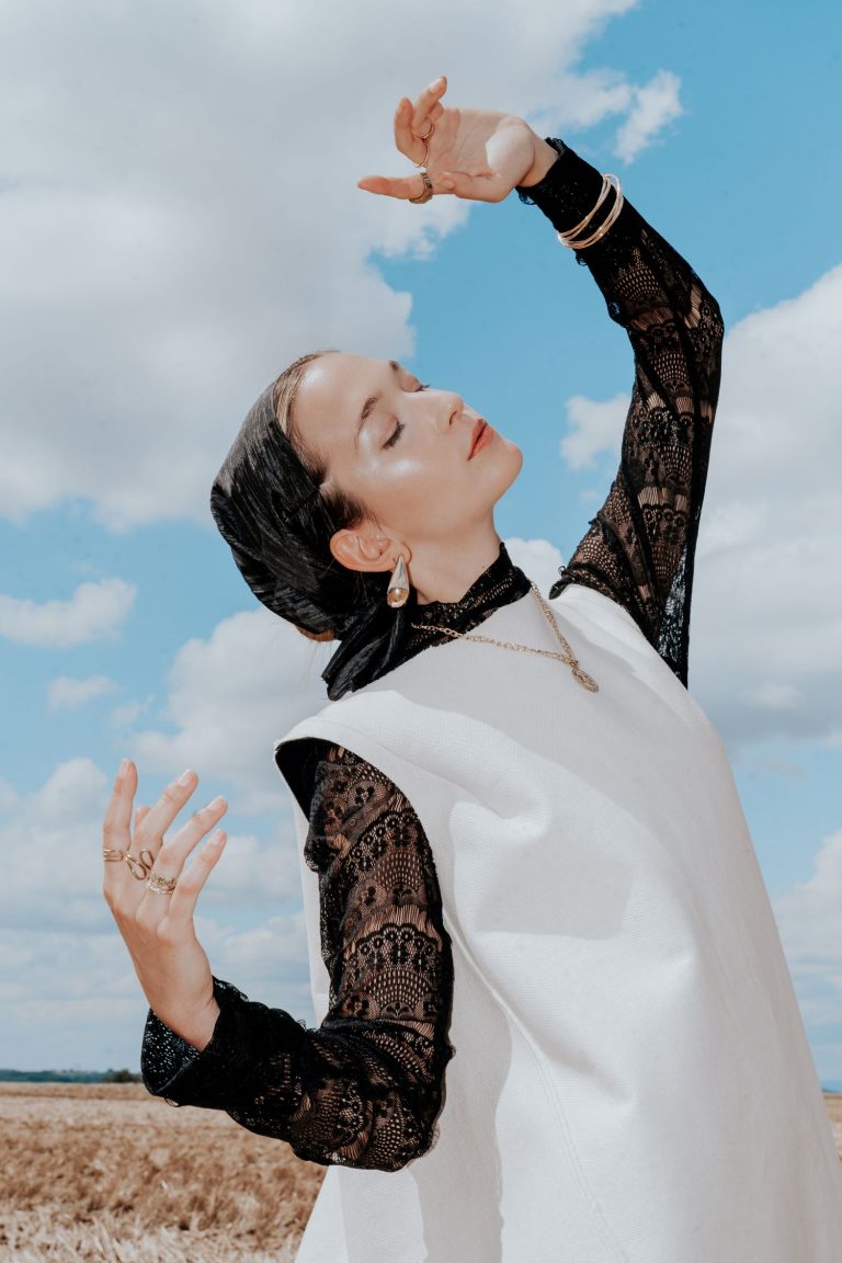 Toutes les tenues ont été imaginées et créées par la talentueuse Kassandra. Derrière l’objectif, Elena a su capter avec justesse la prestance et les poses élégantes de Mathilde.
